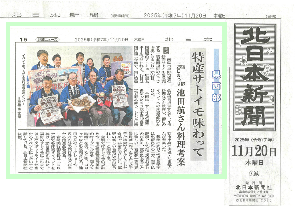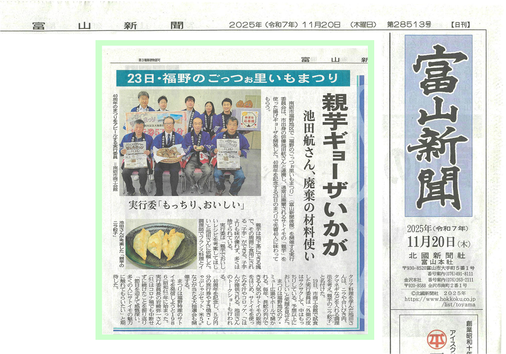 毎年11月23日は恒例の「福野のごっつぉ里いもまつり」
